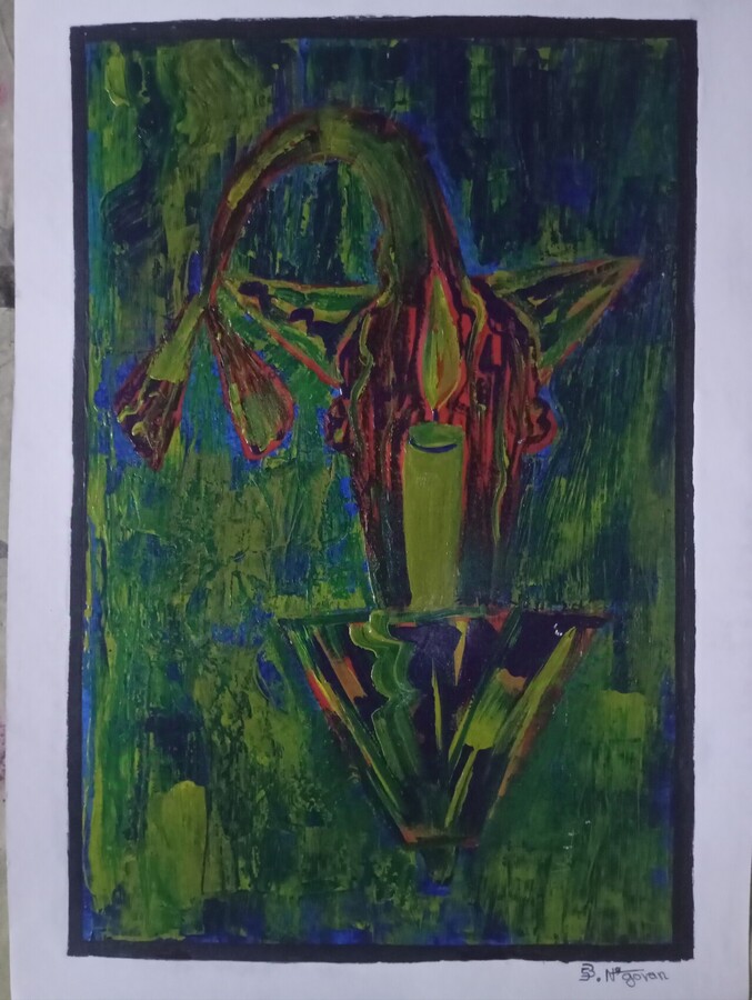 Dans cette œuvre, j’ai capturé la tension entre la vie et la fragilité à travers des formes cubistes et une palette expressive. Chaque trait vibrant incarne une émotion brute, un souffle profond. Cette peinture apporte une énergie intense et mystérieuse, parfaite pour inviter la réflexion et l’émotion à s’installer dans votre espace. C’est un dialogue visuel entre nature et âme.